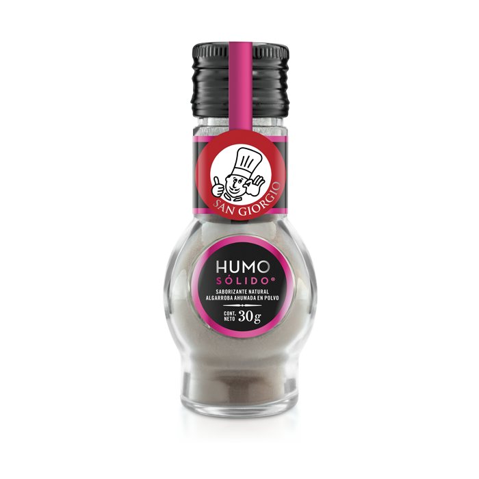 Sólido – Con un sutil sabor amaderado gracias a las notas de algarroba es una buena opción para dar sabor ahumado antes, durante o después de la cocción. Su composición en polvo permite que se fije directamente y en forma homogénea, siendo además soluble en agua. Es un alimento natural y con bajo porcentaje graso que al estar pulverizado permite su fácil dosificación y distribución en las preparaciones. De sabor moderado.