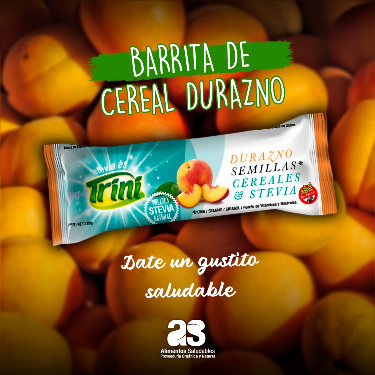 BARRAS DE CEREAL CON DURAZNOS Y SEMILLAS, SIN AZÚCAR AGREGADA, FORTIFICADA CON VITAMINAS DEL GRUPO B, ZINC Y VITAMINA A, REDUCIDA EN CALORIAS, LIBRE DE GLUTEN..