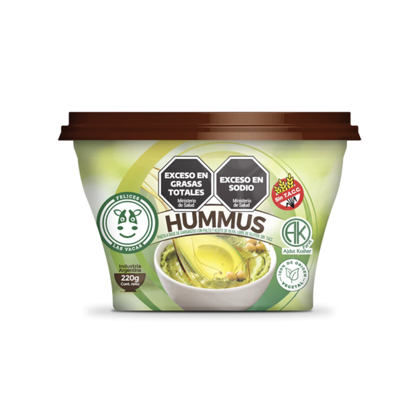Garbanzos, palta, agua, jugo de limón, semillas de sésamo blanco, aceite de oliva, sal, especias.